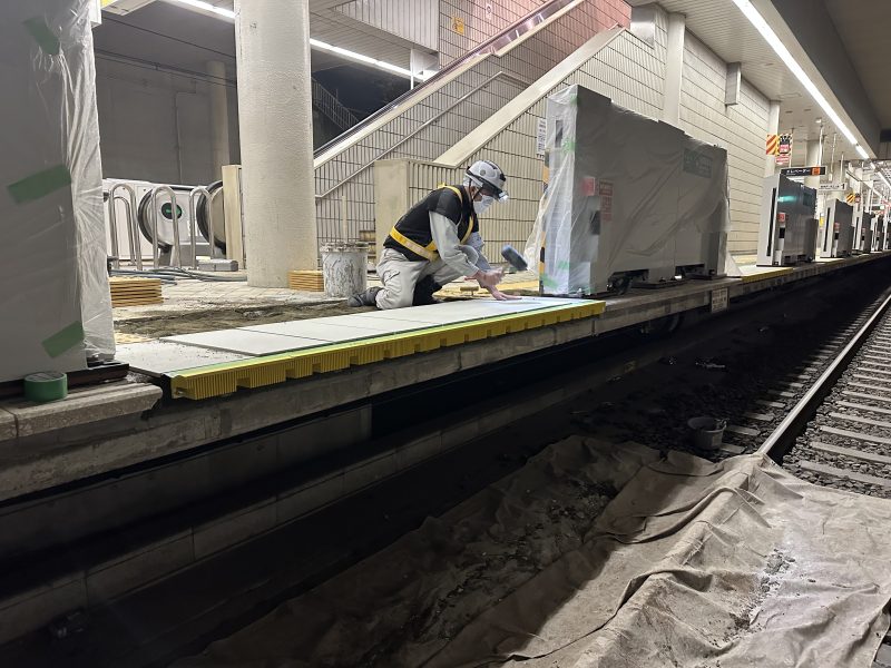 神戸市営地下鉄、西神・山手線にて可動式ホーム柵設置に伴う段差解消工事を行いました。